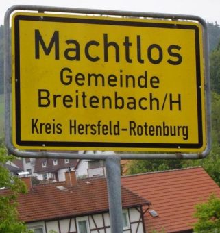 Ortsschild „Machtlos“ Ortsschild „Machtlos“, Gemeinde Breitenbach, im Hintergrund Fachwerkhäuser Beitrags-Navigation Mehrmaliger Seitensprung, meine Frau vertraut mir nicht mehr